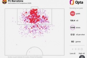 體育資訊12月31日訊 據(jù)數(shù)據(jù)網(wǎng)站OPTA統(tǒng)計(jì),巴薩在2025年60場各項(xiàng)賽事共計(jì)打進(jìn)169粒進(jìn)球(包括烏龍球)。
