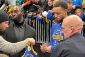 庫里賽前為黃蜂球迷簽名
