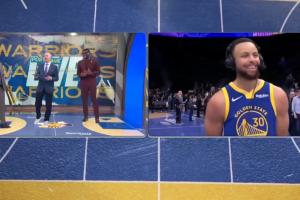 本場(chǎng)賽后,主持人問(wèn)到了庫(kù)里關(guān)于自己的“斯蒂芬·庫(kù)里立交”此前在戴維森學(xué)院揭幕一事。