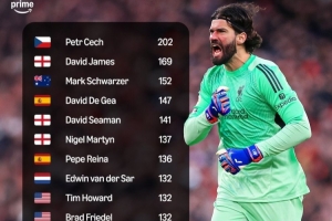 體育資訊1月3日訊 英超第19輪比賽,衛(wèi)冕冠軍利物浦和利茲聯(lián)互交白卷,阿利松把守的球門實(shí)現(xiàn)零封,巴西人成為英超歷史第18位至少零封100場(chǎng)的門將。