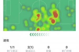 射門1次、射正1次、嘗試過人2次成功1次、丟失球權(quán)15次