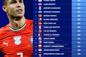 體育資訊10月10日訊 德國轉會市場盤點了新世紀國家隊出場數排行情況,C羅以223場居首,梅西194場次之,莫德里奇191場位居第三。