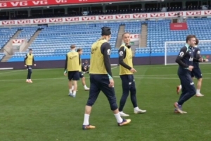 哈蘭德隨挪威隊(duì)備戰(zhàn)此役,他戴上麥克風(fēng)參加球隊(duì)的訓(xùn)練,哈蘭德對(duì)阿爾茨加爾德在訓(xùn)練賽中的表現(xiàn)不滿意,調(diào)侃道:“你還好嗎,你喝大了?你昨晚做了什么?”