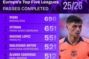 體育資訊10月17日訊 Squawka統(tǒng)計(jì)了本賽季到目前為止歐洲五大聯(lián)賽球員傳球次數(shù)排行,巴薩中場(chǎng)佩德里完成690次傳球位居榜首,巴黎中場(chǎng)維蒂尼亞651次排在第二位。