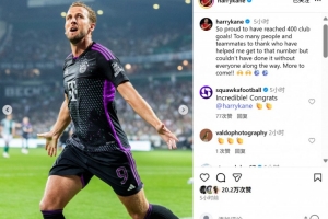 凱恩也在社媒發(fā)文紀(jì)念這一特殊時(shí)刻,寫道:“很自豪能夠完成俱樂部生涯400球,達(dá)成這一紀(jì)錄得益于太多人的幫助,沒有大家一路的支持我不可能做到。未來還有更多進(jìn)球!”