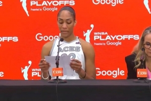 體育資訊9月29日訊 今日WNBA季后賽半決賽G4,拉斯維加斯王牌83-90不敵印第安納狂熱,阿賈賽后接受了媒體采訪。