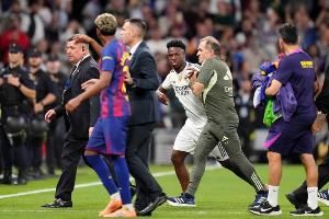 巴爾韋德、米利唐、貝林厄姆、呂迪格、阿拉巴(后兩人因傷未進入大名單)都跑向替補席,拉菲尼亞(受傷)和埃里克-加西亞也參與其中,還包括兩隊的工作人員。
