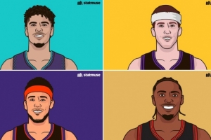 其中拉梅洛-鮑爾在4場比賽的第一節(jié)比賽共計得到45分,里夫斯在4場比賽的第二節(jié)比賽共計得到48分,布克在5場比賽的第三節(jié)比賽共計得到57分,馬克西4場比賽的第四節(jié)則是共計53分。