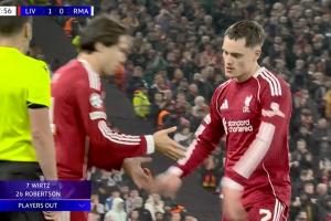 體育資訊11月05日訊 歐冠第4輪利物浦vs皇馬第89分鐘,利物浦再次做出2個(gè)換人調(diào)整,維爾茨、羅伯遜被換下,凱爾凱茲、基耶薩替補(bǔ)登場(chǎng)。