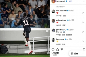 體育資訊10月1日訊 在拜仁客場5-1大勝帕福斯后,取得加盟拜仁后首粒進球的杰克遜更新了社交媒體,紀念這一時刻。