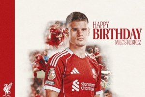 利物浦官方社媒曬出為凱爾凱茲制作的生日海報(bào),配文:“祝你度過(guò)美好的一天,米洛斯。”
