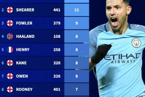 體育資訊11月10日訊 德轉(zhuǎn)盤點了英超歷史上上演帽子戲法次數(shù)榜,其中阿圭羅12次居首,哈蘭德8次第四,具體如下: