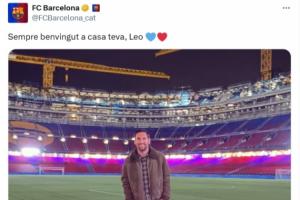 體育資訊11月10日訊 梅西ins曬照重返諾坎普兩小時后,巴薩官方發(fā)文:歡迎你隨時回家,萊奧。
