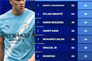 體育資訊10月2日訊 在本輪歐冠曼城2-2戰(zhàn)平摩納哥的比賽中,哈蘭德梅開二度。以下為自哈蘭德2019年首秀以來歐冠進(jìn)球榜: