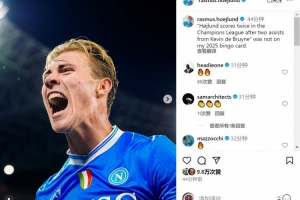 霍伊倫社媒曬出慶祝進(jìn)球的照片,并發(fā)文調(diào)侃:“霍伊倫在歐冠比賽中梅開二度,還都是德布勞內(nèi)的助攻——這完全不在我2025年的劇本之中?!?/p>
