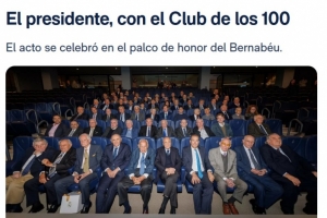 體育資訊11月22日訊 皇馬官網報道,俱樂部主席弗洛倫蒂諾在伯納烏球場榮譽包廂出席傳統(tǒng)“百人俱樂部”午宴,設宴招待俱樂部最資深的會員們。