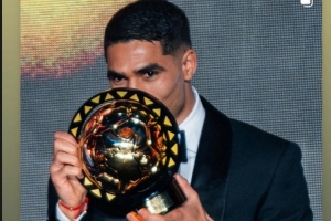 巴黎邊衛(wèi)阿什拉夫當選2025年非洲足球先生,拉莫斯社媒曬出阿什拉夫領(lǐng)獎的照片,配文:“祝賀你,我的兄弟,你是最棒的(Number 1)!”