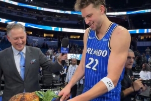 這是魔術(shù)在感恩節(jié)前(當(dāng)?shù)貢r(shí)間下周四)的最后一個(gè)主場(chǎng)比賽,賽后小瓦格納在魔術(shù)主場(chǎng)切火雞提前慶祝節(jié)日。