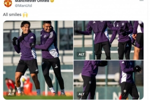 曼聯(lián)官方更新社媒動態(tài),曬出今日的訓(xùn)練照片,庫尼亞在列,他露出笑容,看起來傷勢問題不大。