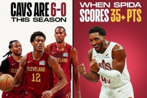 據(jù)統(tǒng)計(jì),這是米切爾本賽季至今第6次單場(chǎng)至少砍下35分,在這6場(chǎng)比賽中,騎士隊(duì)保持全勝。而騎士本賽季的戰(zhàn)績(jī)則是12勝6負(fù)。