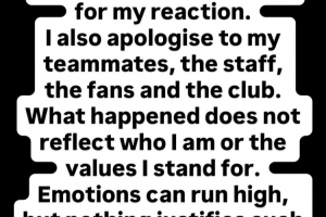“發(fā)生的事情并不能反映我的為人,也不能反映我所代表的價(jià)值觀。情緒激動(dòng)在所難免,但沒有什么理由可以為這種行為辯護(hù),我保證這種事不會(huì)再發(fā)生了?!?/p>