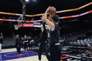 GIF-謝潑德賽前熱身 底角三分四連中