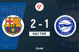 體育資訊11月30日訊 北京時(shí)間11月29日23:15,西甲第14輪巴薩迎戰(zhàn)阿拉維斯的比賽在諾坎普球場(chǎng)進(jìn)行,上半場(chǎng)伊巴涅斯開(kāi)場(chǎng)閃擊反客為主,亞馬爾抽射扳平比分,加西亞獻(xiàn)神撲,拉菲尼亞助攻奧爾莫反超比分,亞馬爾中柱,半場(chǎng)結(jié)束,巴薩2-1阿拉維斯。
