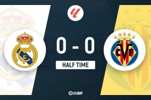 體育資訊10月5日訊 體育資訊10月5日訊 西甲第8輪,皇家馬德里坐鎮(zhèn)主場伯納烏迎戰(zhàn)比利亞雷亞爾。上半場,馬斯坦托諾失良機(jī),瓊阿梅尼頭球造險,庫爾圖瓦拒單刀。半場戰(zhàn)罷,皇馬0-0黃潛。