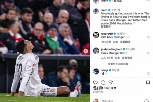 阿諾德社媒寫道:“對(duì)這次受傷真的感到非常沮喪。這個(gè)時(shí)機(jī)太難熬了,但我會(huì)努力訓(xùn)練,變得更強(qiáng)、更好!2026年再見(jiàn),皇馬球迷們 ??”