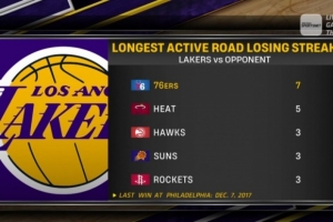 湖人上一次在費(fèi)城贏球還要追溯到2017年12月7日。