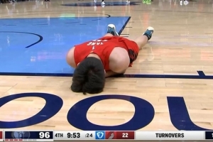楊瀚森遭遇包夾被埃迪打到面部痛苦倒地 在地上躺了半天沒起來(lái)