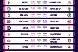 01:45 拜仁(71.8%)vs葡萄牙體育(12.3%)