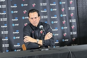 賽后采訪,主帥斯波表情凝重,談到本場失誤他表示:“對手在第二節(jié)打得非常棒,而我們總在犯同樣的錯誤,當(dāng)我們無法投進(jìn)球時,我們的防守會陷入困境,無法阻止對手得分。你不能讓防守來完全決定勝負(fù)……不管你投不投得進(jìn)三分……你需要找到其他贏球的方式?!?/p>