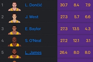1、東契奇 場(chǎng)均30.7分