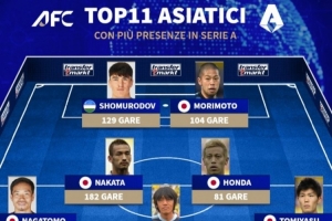 意甲出場最多的亞洲球員11人陣:中田英壽、長友佑都、奧代羅在列