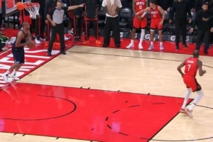 ??關(guān)鍵失誤:哈登沒(méi)有回頭 巴圖姆踩線后神情低落 盧直接掛機(jī)