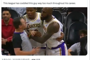 體育資訊12月16日訊 湖人昨日客場116-114險勝太陽,比賽中詹姆斯對裁判進行推搡和大喊大叫,但沒有吃到技犯引起熱議。