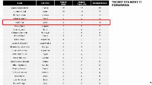 在國際足聯(lián)公布的最佳陣前鋒位置評分中,拉菲尼亞排名第五,其中球迷評分5分、專家評分7分,總得分12分,落后于登貝萊(26分)、亞馬爾(22分)、哈蘭德(17分)、姆巴佩(16分)。