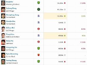 國足球員身價前十↓