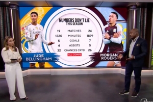 體育資訊12月22日訊 英超第17輪,維拉主場(chǎng)2比1力克曼聯(lián)。其中羅杰斯梅開(kāi)二度。賽后,在CBSSPORT節(jié)目中,主持人與前英格蘭國(guó)腳、維拉舊將里奧·科克談到了羅杰斯和貝林厄姆誰(shuí)更應(yīng)該擔(dān)任英格蘭首發(fā)10號(hào)的話題。