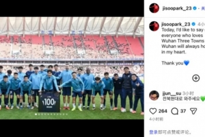 體育資訊12月31日訊 今日,韓國(guó)后衛(wèi)樸志洙更新社媒,向武漢三鎮(zhèn)告別。