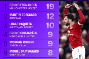 體育資訊1月1日訊 數(shù)據(jù)網(wǎng)站Squawka盤(pán)點(diǎn)了2025年英超聯(lián)賽球員直塞球次數(shù)排行,曼聯(lián)中場(chǎng)B費(fèi)19次直塞,大幅領(lǐng)先排名榜首,阿森納中場(chǎng)厄德高12次第二。