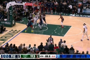 GIF-字母哥還剩8.8秒時拿到前場籃板立刻起身補籃沒進