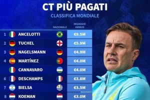 卡納瓦羅 (意大利) → 執(zhí)教 烏茲別克斯坦:400萬(wàn)歐元