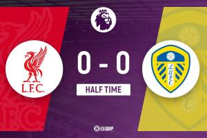 上半場補時2分鐘,利物浦0-0利茲聯(lián)。