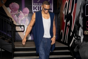 賽前,國(guó)王官方曬出了球員的入場(chǎng)照,威少穿著類似于汗衫的服裝入場(chǎng)。