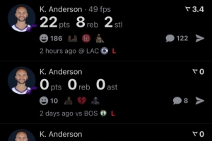 李凱爾今日賽前已連續(xù)7場遭DNP 上一次出戰(zhàn)是2025年12月16日對獨行俠